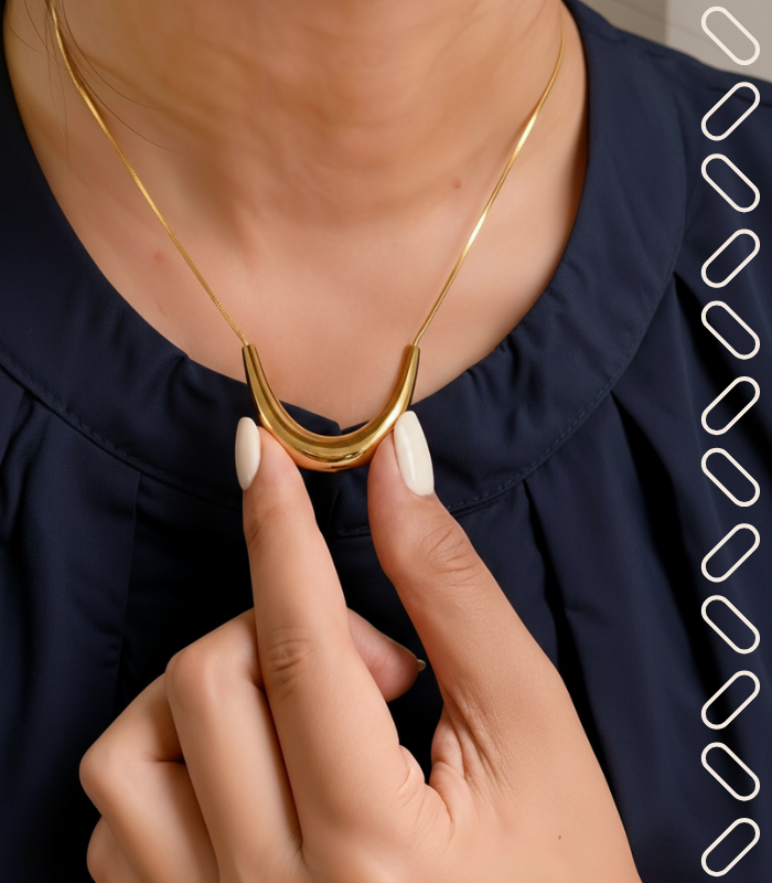 Embodying the graceful arc of a crescent moon, this gold-plated necklace features a sleek, polished curve that rests beautifully against the skin. Crafted as hypoallergenic jewelry for lasting comfort, its minimalist silhouette provides a timeless accent that transitions effortlessly from everyday simplicity to evening elegance.